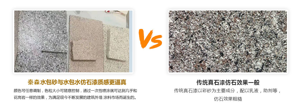 秦森天然真石漆,一直堅(jiān)持使用高品質(zhì)原材料,絕不為了利潤(rùn)向低端妥協(xié),主要采用各種顏色的天然石粉配制而成,應(yīng)用于建 筑外墻的仿石材效果。